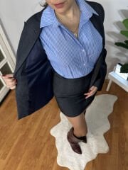 Denim kumaştan etek ve astarlı ceket takım.